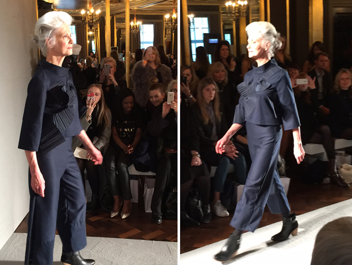 A great event where the audience were as interesting as the models – the Fabulous Fashionistas were out in force, as were a group of 60 and 70 something celebrities who had defied age through surgery. They were fascinating – skinny & blonde, dressed in de rigueur rock chic clothing, with faces that didn’t move! But, much as they look amazing in photographs, in IRL they seemed like a sad reflection of the kind of age discrimination we are trying to avoid, rather than a celebration of growing older in a positive, realistic way.