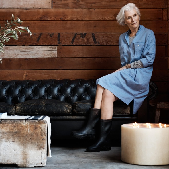 The new ad campaign for Californian brand James Perse‘s A/W 16/17 collection features 68-year-old model Maye Musk.