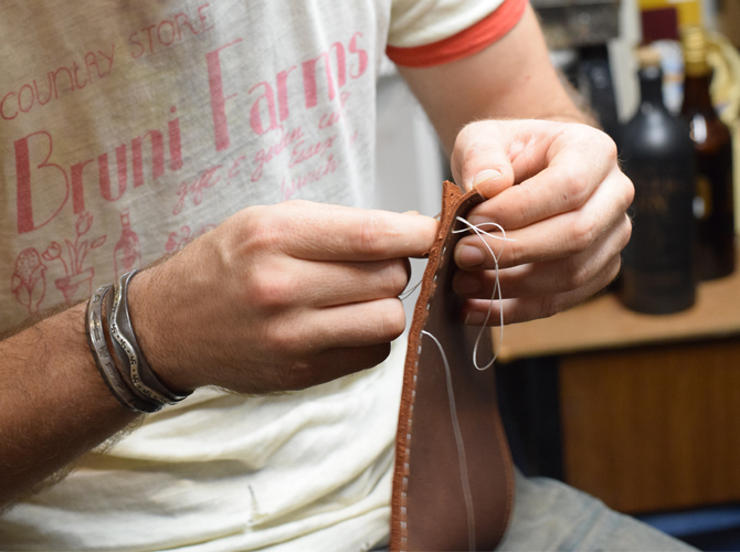 I commissioned him to make a tiny phone-bag, so’s not to have it in my hand continually, it was $35 and is beautiful. I really lucked out that the store sat right over the street from the Elsewhere Project and it didn’t take long to make friends with Evan and his hat-making assistant Carmen.