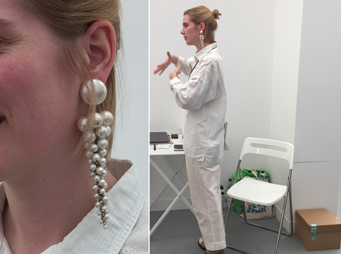 I loved this woman above, in her simple long white shirt and wide cropped white trousers, she looked both comfortable and stylish, but what I had to hold back from wrestling from her lobes were her simply wonderful pearl earrings. They were articulated, so each pearl moved and gracefully floated as her head moved. They belonged to her mum apparently, and she have no idea where they came from originally. I have set up an eBay search…obvs.