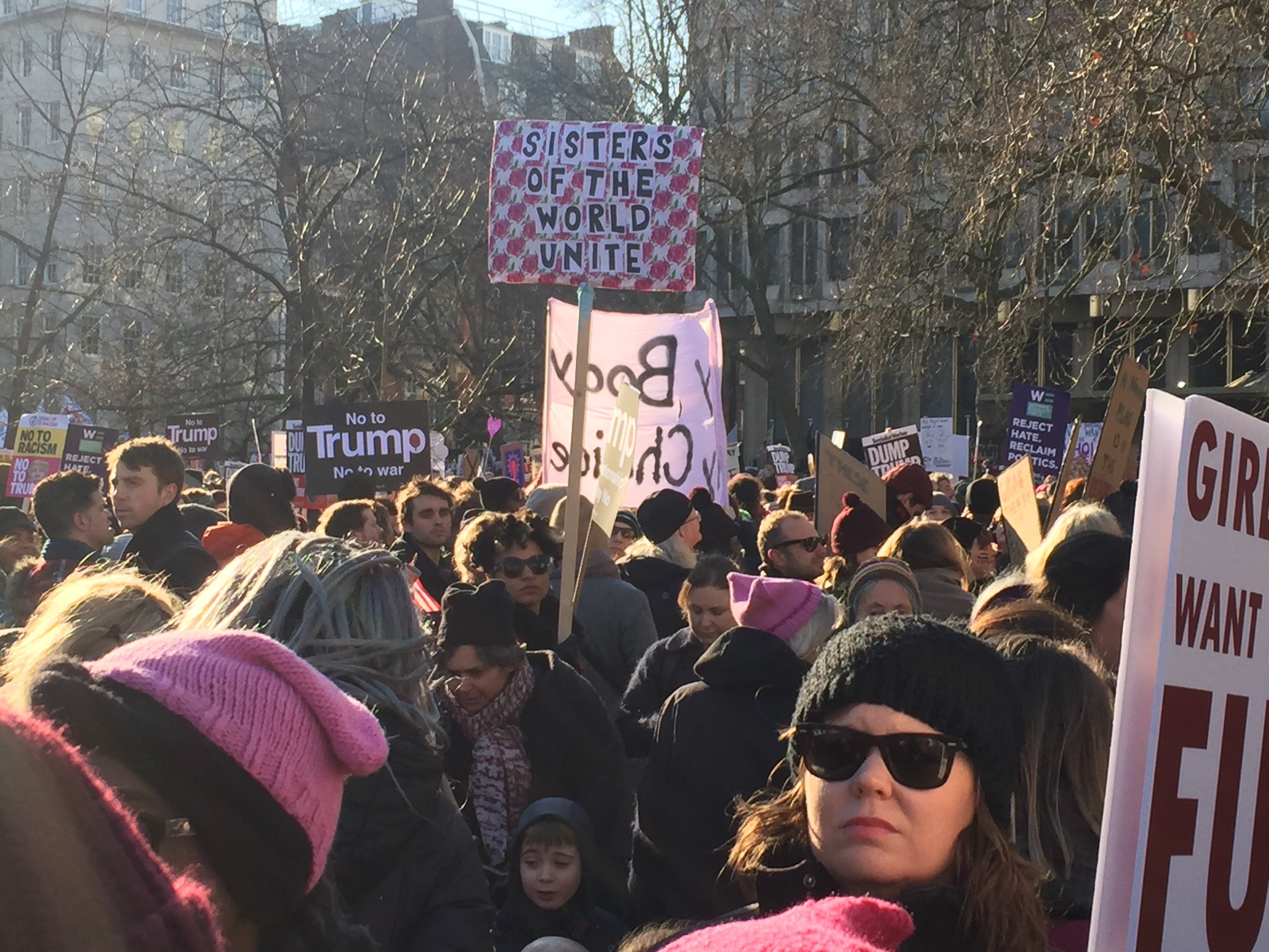 Many of you will have been on Women’s Marches around the world this weekend and I’m sure like us, you will had an amazingly uplifting and positive experience. The sun shone as we stood in Grovesnor Square among the banners and chanting, waiting to make our way through central London, to show our solidarity with those in the US and to stand up for the human rights we feel are being slowly eroded in the face of the increasing shift to the right around the world.