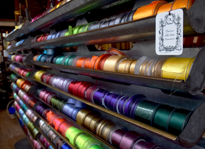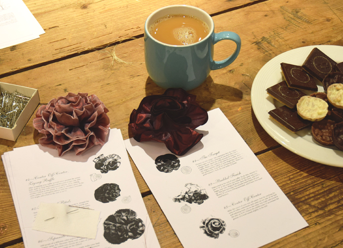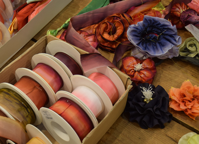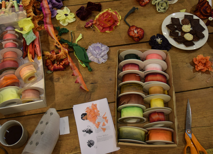 Last weekend I was invited to VV Rouleaux to experience its flower making course for myself. Now, anyone who sews knows VV Rouleaux, it’s the Harrod’s Of Haberdashery, stacked from floor to ceiling with every conceivable luxury ribbon, in every colour available. Double-sided velvet, double faced satin wider than the spread of your hand, perfectly formed tiny autumn leaves strung together on chiffon, embroidered grosgrain, ostrich feather tassels and even slender velvet rope, it’s enough to make a person swoon. It’s not cheap, but it is glorious and the idea of sitting in the Marylebone store being instructed on how to make roses from its ombre-dyed ribbons was my idea of heaven.