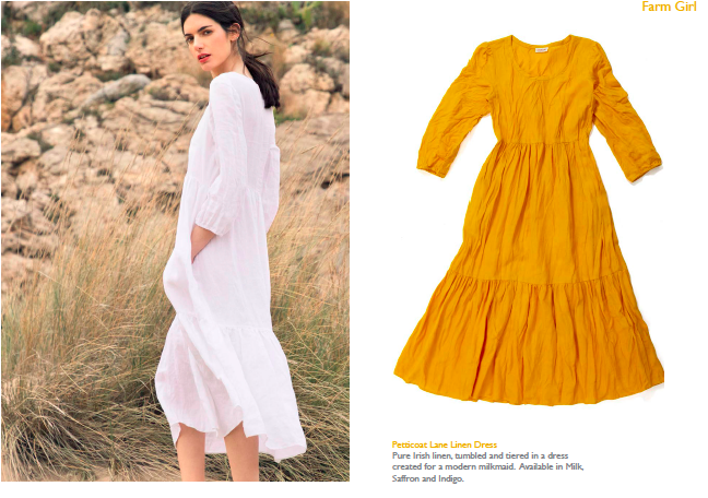 My favourite dress has to be the Petticoat Lane Dress. A simple, tiered dress that I’ve made in corduroy and now in Irish linen. It is effortless, slightly bohemian and looks equally great for gardening and a night out! It’s super comfortable with the added bonus of pockets. Even better, all washable and looks even nicer just hung out to dry with no ironing!