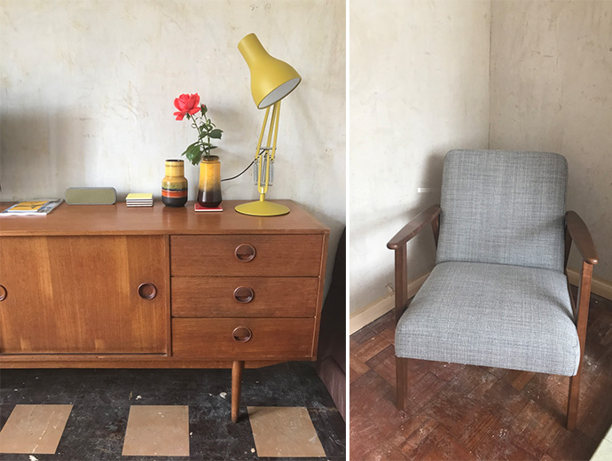 My compulsion to make even grimmest of interiors homely means I have been picking flowers from the over grown garden and trying to make corners of loveliness among all the chaos. The furniture from my parents old house looks perfect alongside our new Ikea chair and Anglepoise lamp and our collection of vintage vases are slowly starting to make their way to Margate from London.