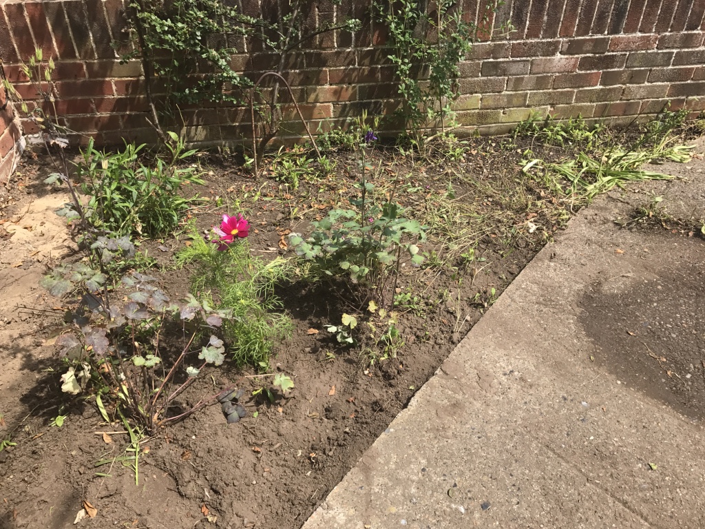 The house renovation is coming along well – mainly because M.I.D is a DIY genius and can turn his hand to almost anything. So far he has pulled up all the horrible carpets, ripped out the grubby kitchen units, stripped all of the wallpaper and removed a hideous lean-too and dangerous greenhouse. Give him a power tool and a project and he is at his happiest and I rather traditionally (for me) am resigned to dog walking, tea making and attempting the garden.