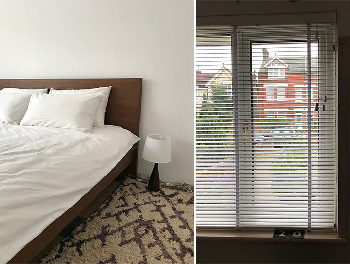 I have got quite used to no carpets or kitchen and a revolting bathroom, but painting the bedrooms white, installing a new bed and rug from a lovely local company Orikka, has made all the difference. We also have new white wooden blinds – for that coastal chic look – from our local curtain shop, Whites of Kent. Mr White himself came round to measure up (wearing a tie) and the whole experience was wonderfully professional in that way that only good old fashioned family shops are.