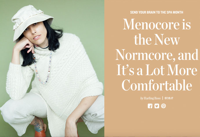 A great feature on Manrepeller recently by Harling Ross (is it just me or do American Millennials have really lovely names?) on how she’s been inspired by menopausal women, style wise. Apparently Menocore is the new Normcore, who knew? In particular, Diane Keaton in Something’s Gotta Give, with her cosy knits, forgiving linen separates and tiny glasses. I’d add Annette Benning in 20th Century Women to that list (my fav film this year) and her fabulous printed shirts. Read it here.