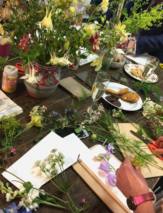 I have pressed flowers since I was big enough to pick them. I’ve got old diaries from my teenage years filled with scrappy buttercups and unidentifiable brownish foliage which meant something at some point and adds a decorative edge to the inky scrawl. I’ve kept on pressing, and last year my sons bought me a press as an alternative to filling every book in the house with squished flowers. But things can go wrong; rot seeps in, once beautiful bloom flatten to a brown mass and vibrant colour is frequently lost. So I signed up to a Jam Jar workshop to learn stuff.