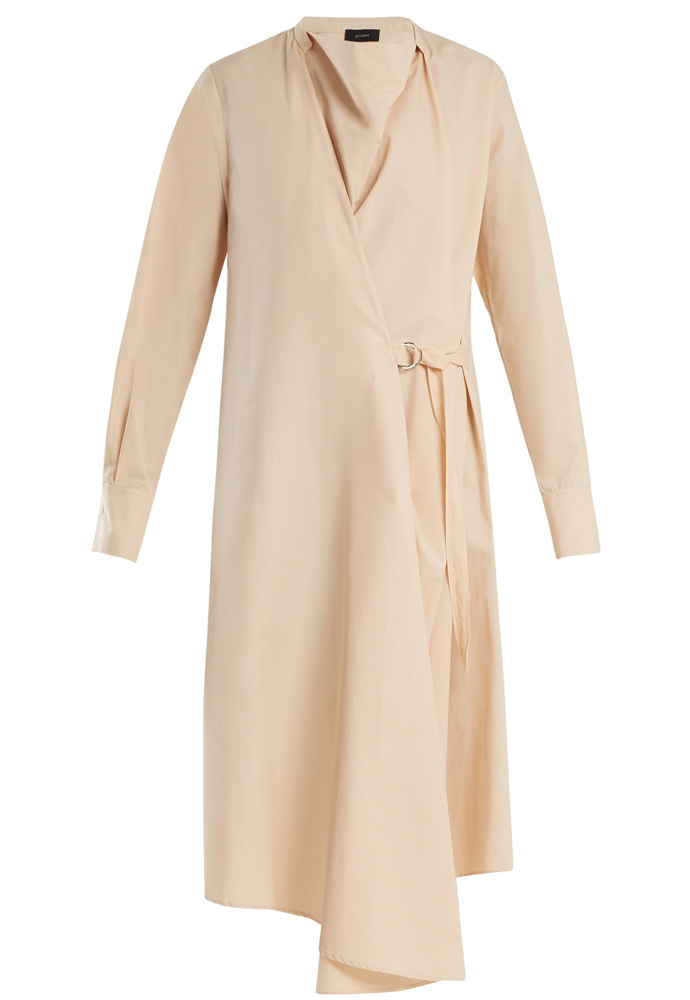- For a dress that might work for longer than the heatwave, you might like to invest in quality. I am currently contemplating a really lovely Joseph dress in cucumber-cool blue and white, (£276 from £395) designed with a pretty cowl neck, generous shaping and artful front belt detail which elevates the look and is easy to wear if you have menopausal mid-rift curves. It also comes in a lovely rice-pudding vanilla colourway – in cotton poplin, I’m considering plimsoles in a matching shade for maximum Sara Berman channelling – (£146 from £365). Both available online from Matches